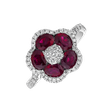 An 18ct white gold diamond ring is an expression of your unique personality. Ruby brings passion and energy into your life, while diamonds add an unmistakable shine to the jewelry. It is a ring that symbolizes joy and success in your life. The jewelry is part of the Mirage collection.