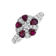 Indulge in luxury embodied in this 18ct white gold diamond and ruby ring. Every detail of this jewelry has been carefully designed and crafted to give you a unique sense of elegance and beauty. The jewelry is part of the Flowers collection.