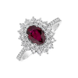 Courage is embodied in this 14ct white gold diamond and heart-warming ruby ring, designed for strong personalities who celebrate their success with the same seriousness with which they wear their jewelry. The jewelry is part of the Diana collection.