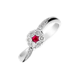 This 14ct white gold ring is adorned with beautiful diamonds and a ruby. It is the perfect accessory for every personality with taste. Its unique design and beautiful ruby give the piece a radiant elegance. It will be a great addition to your outfit and will bring you lots of compliments. The jewelry is part of the Mirage collection.