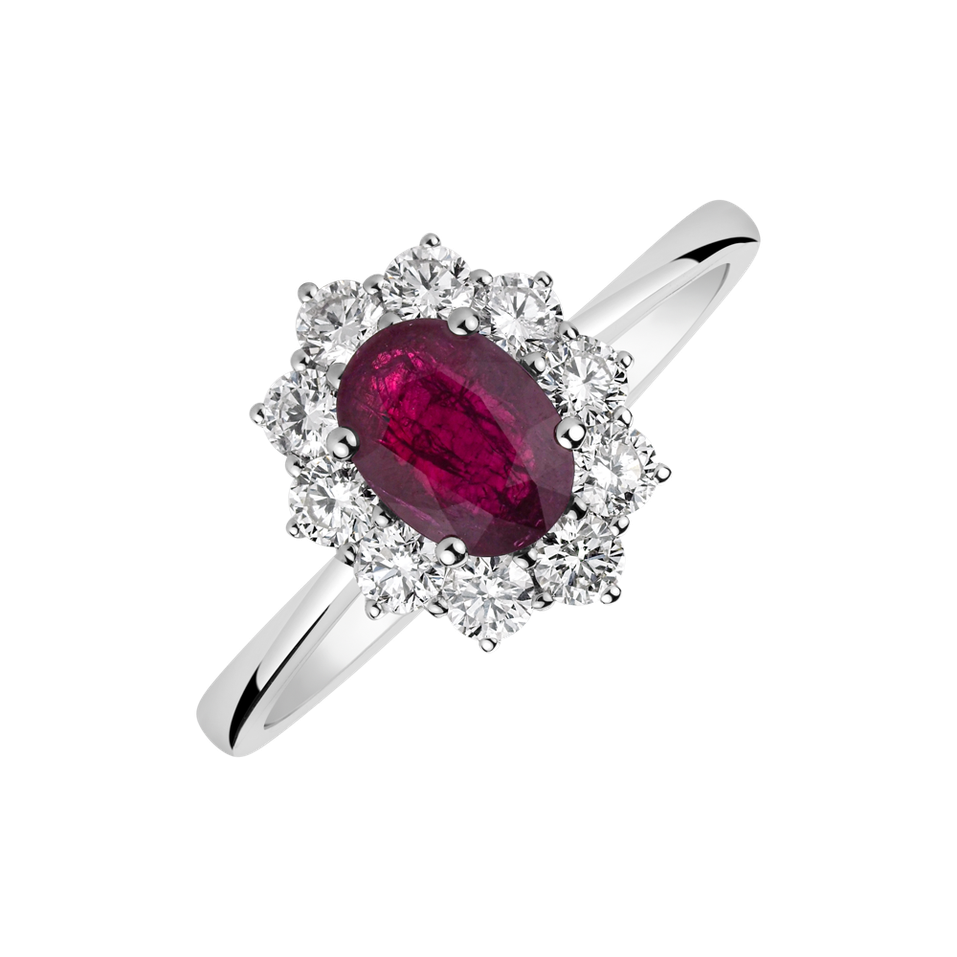 The marriage of 14ct white gold, diamonds and ruby in this ring creates a bold symbiosis that reflects a strong personality and confident elegance. Luxury jewelry like these will not only emphasize your uniqueness, but also bring into your life a unique touch of exclusivity and nobility that you deserve. The jewelry is part of the Diana collection.