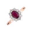 The marriage of 14ct rose gold, diamonds and rubies in this ring creates a bold symbiosis that reflects a strong personality and confident elegance. Luxury jewelry like these will not only emphasize your uniqueness, but also bring into your life a unique touch of exclusivity and nobility that you deserve. The jewelry is part of the Diana collection.