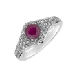 This 18ct white gold ring is adorned with beautiful diamonds and a ruby. It is the perfect accessory for every personality with taste. Its unique design and beautiful ruby give the piece a radiant elegance. It will be a great addition to your outfit and will bring you lots of compliments. The jewelry is part of the Luxury Classic collection.