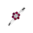 A delicate 14ct white gold diamond and ruby ring that reflects elegance and classic beauty. Its simple but distinctive design will appeal to every woman looking for something special. The jewelry is part of the Mirage collection.