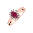 A 14ct rose gold diamond and ruby ring is like a sweet song capturing the essence of beauty and harmony. This piece of jewelry is made for moments when you want to shine like never before. The jewelry is part of the Diana collection.