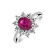 Subtlety and elegance come together in this 18ct white gold diamond and ruby ring that celebrates your every gesture. The jewelry is part of the Diana collection.