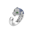 Elegance is never overlooked when you wear this 18ct white gold diamond, sapphire and green garnet ring, perfect proof that true beauty can be simple and radiant at the same time. The jewelry is part of the Animals collection.