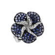 Diamonds, sapphires and precision. The 18ct white and black gold diamond and sapphire ring is a masterpiece of craftsmanship and an adornment for those who know the value of true beauty and power. The jewelry is part of the Flowers collection.