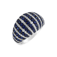 Elegant ring in 18ct white gold, decorated with diamonds and sapphires, is a symbol of sophistication and timeless beauty. Its glossy surface and imaginative design represent perfection in every detail. The jewelry is part of the Charming collection.