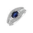 A finely tuned 18ct white gold ring, adorned with brilliant diamonds and a deep sapphire, is a solemn expression of the depth of your feelings and an opulent sign of your taste. The jewelry is part of the Glamour Edge collection.