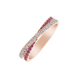 Diamonds, sapphires and precision. The 18ct rose gold ring with diamonds and pink sapphire is a masterpiece of craftsmanship and an ornament for those who know the value of true beauty and power. The jewelry is part of the Essential collection.
