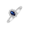 This gorgeous 14ct white gold diamond and sapphire ring is an elegant accessory for any occasion. The sapphire symbolizes wisdom and fidelity, and the diamonds add a beautiful shine and light to the ring. This is a piece of jewelry for those who seek elegance and uniqueness. The jewelry is part of the Diana collection.