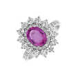 Be the center of attention with this exclusive 14ct white gold ring. Its brilliant pink sapphire surrounded by bright diamonds represents a combination of luxury and the charm of nature. The jewelry is part of the Diana collection.