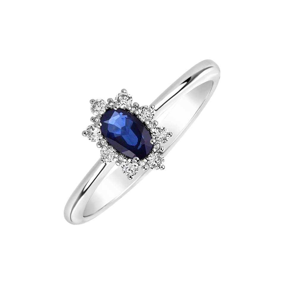 Designed for discerning lovers of luxury, this 14ct white gold diamond and sapphire ring is a testament to courage and an immense sense of beauty hidden in the light of simplicity. The jewelry is part of the Diana collection.