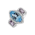 Celebrate unique design and honest craftsmanship in this 18ct diamond, swiss topaz and pink amethyst ring, the perfect expression of spectacular beauty. The jewelry is part of the Fantasy collection.