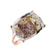 Celebrate every day with an 18ct rose gold ring adorned with a diamond, white topaz and pink sapphire. Its unique design and quality workmanship make it the perfect accessory for any occasion. The jewelry is part of the Fantasy collection.