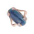 This 18ct rose gold ring is a masterpiece where diamonds combine with london topaz to create the perfect guide on the journey of style and beauty. Made with the highest precision and skill. The jewelry is part of the Fantasy collection.