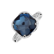 Fragility and strength combine in this 18ct white gold ring with diamonds and a perfect london topaz - a bold contribution to your infinite beauty. The jewelry is part of the Blossoms collection.