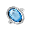 If you're looking for a statement of true sophistication, this 18ct white gold sky topaz diamond ring is both the image and assurance of eternal sparkle and flawless brilliance. The jewelry is part of the Blossoms collection.