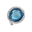 The 18ct white gold ring with diamonds and sky topaz is a subtle but confident statement of sophistication and fresh elegance. The diamond accent adds a touch of luxury to this ring, while the topaz sky brings brightness and freshness to your look. This ring is the perfect accessory for any occasion, highlighting your unique elegance. The jewelry is part of the Fantasy collection.
