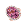 Surrounded by the sparkle of the purest diamonds and purple tourmaline, this 14ct rose gold ring is a bold statement of elegance and natural beauty that will last forever. The jewelry is part of the Fantasy collection.