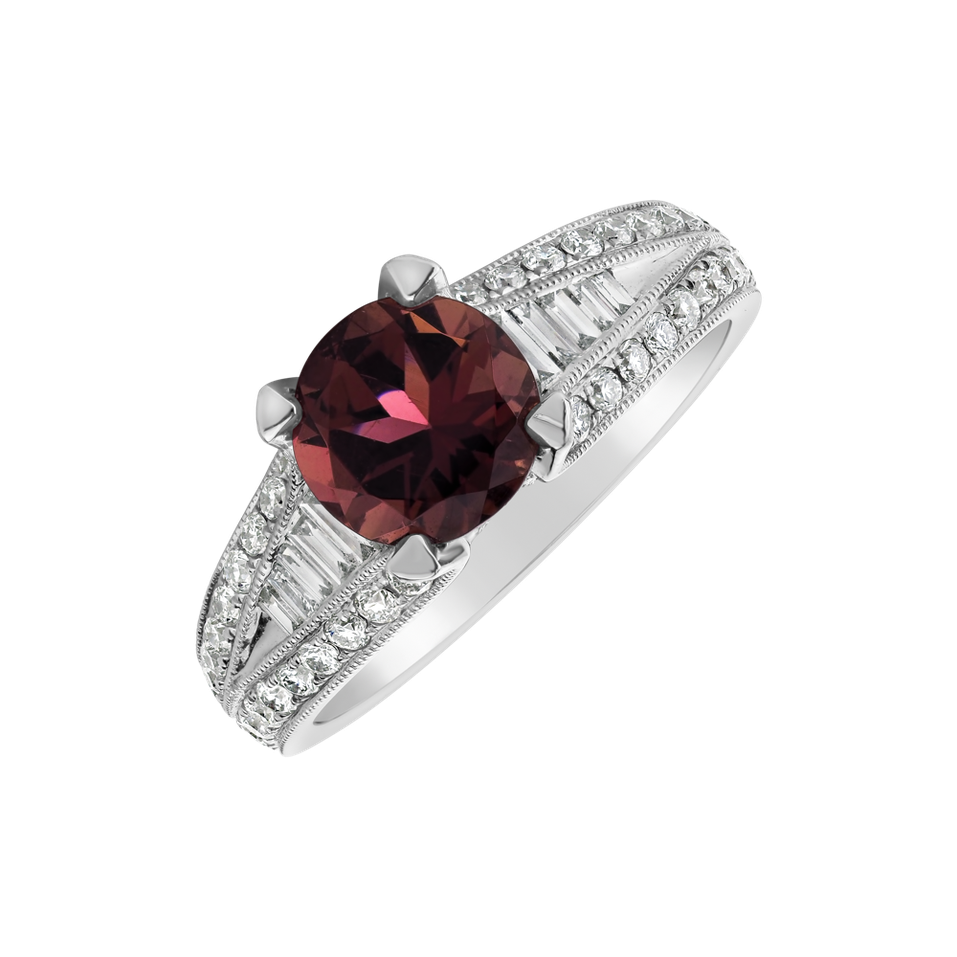 This 18ct white gold ring is decorated with beautiful diamonds and purple tourmaline. It is the perfect accessory for every personality with taste. Its unique design and beautiful purple tourmaline give the piece a radiant elegance. It will be a great addition to your outfit and will bring you lots of compliments. The jewelry is part of the Glamour Edge collection.