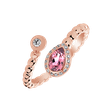 Surrounded by an aura of luxury, this 18ct rose gold ring, set with diamonds and pink tourmaline, is a jewel that reflects depth and sophistication. His heart is like a window to a world of infinite elegance. The jewelry is part of the Fantasy collection.
