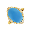 A 14ct yellow gold ring with diamonds and turquoise is like the birth of a new star. Its dazzling stones, glittering in every ray of light, are a symbol of the triumph and endless beauty that this magnificent celestial dance brings with it. The jewelry is part of the Blossoms collection.