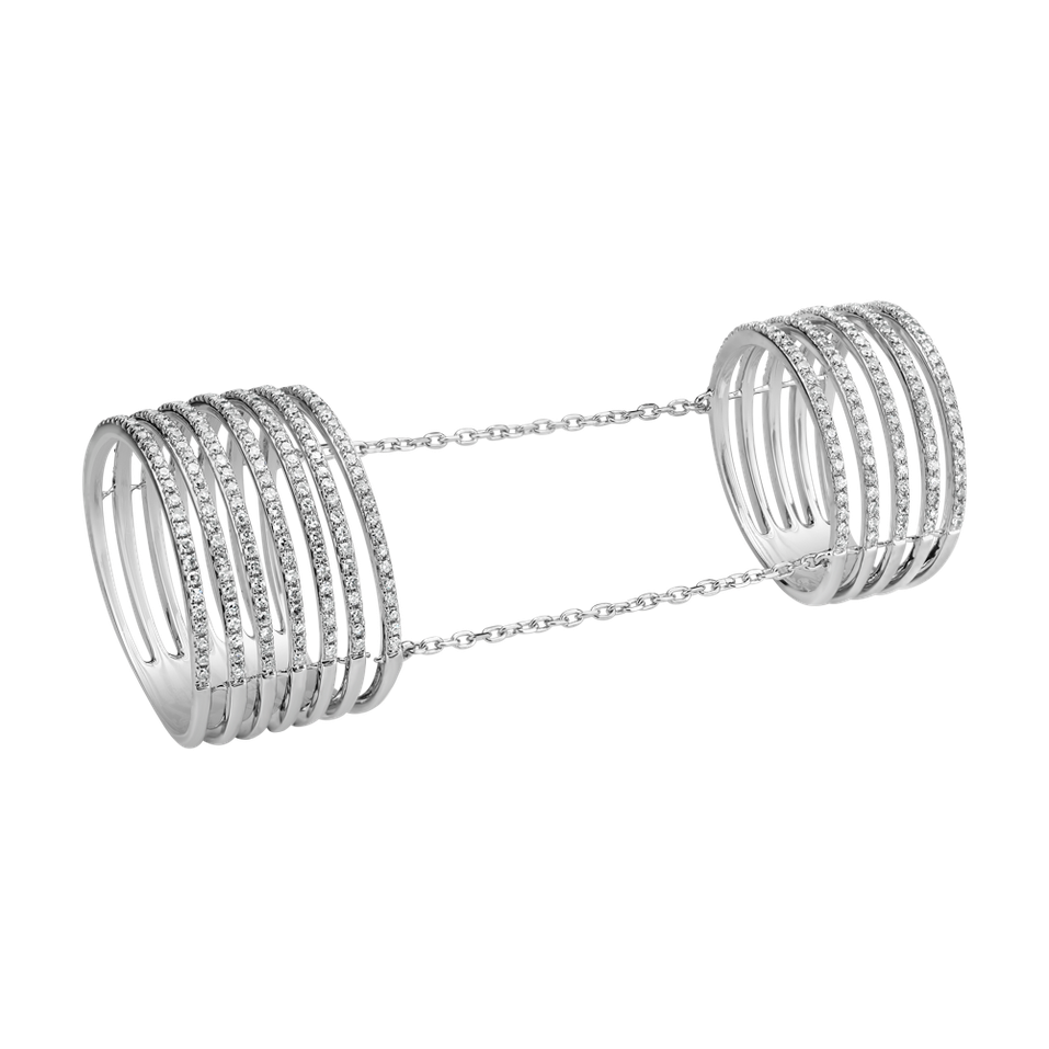 A 14ct white gold ring with diamonds that is like a flash of sunlight on the surface of the water. Its radiant appearance represents success and clarity, ideal for those who value a life full of light and joy. The jewelry is part of the Aphrodité collection.