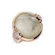 The 18ct rose gold ring with diamonds, the beauty of which is emphasized by the beautiful amethyst green, is a symbol of elegance and timeless beauty. Its refined design and the brilliance of amethyst green bring a feeling of luxury and exclusivity. The jewelry is part of the Fantasy collection.
