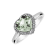 Exclusive ring in 14ct white gold with diamonds and selected green amethyst, is a perfect symbol of elegance and luxury. Its precise processing and beautiful shine will enchant you at first sight. The jewelry is part of the Hearts collection.