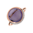 Amethyst brazil and precision. The 18ct rose gold ring with diamonds and brazil amethyst is a masterpiece of craftsmanship and an ornament for those who know the value of true beauty and power. The jewelry is part of the Blossoms collection.