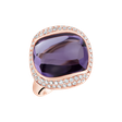 With a ring made of 18 ct rose gold, which is set with diamonds and Brazilian amethyst, you give not only a piece of jewelry, but a testimony of personal nobility and elegance. Whether worn on special occasions or as an everyday accessory, this gorgeous piece of jewelery will shine on any woman and bring her glamor and confidence. Its unique design and exceptional beauty make it the perfect gift for any woman who appreciates taste and quality. The jewelry is part of the Blossoms collection.