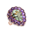 Combining diamonds, green amethyst and African amethyst, this 18ct rose gold ring is a testament to deep feelings and a unique style that will never let you down. Its timeless design and luxurious beauty make it not only an elegant piece of jewelry, but also a faithful companion on the journey of your life. The jewelry is part of the Fantasy collection.