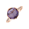 The 18ct rose gold ring with diamonds and Brazilian amethyst is like a spark of an eternal flame - full of energy and strength. This jewel is intended for those who are looking for something extraordinary in life. The jewelry is part of the Blossoms collection.