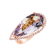 Every ray of light seems brighter when reflected in this gorgeous 18ct rose gold diamond and pink amethyst ring. One jewel - a thousand moments of endless glitter. The jewelry is part of the Fantasy collection.