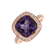 With a ring made of 18 ct rose gold, which is set with diamonds and Brazilian amethyst, you give not only a piece of jewelry, but a testimony of personal nobility and elegance. Whether worn on special occasions or as an everyday accessory, this gorgeous piece of jewelery will shine on any woman and bring her glamor and confidence. Its unique design and exceptional beauty make it the perfect gift for any woman who appreciates taste and quality. The jewelry is part of the Fantasy collection.