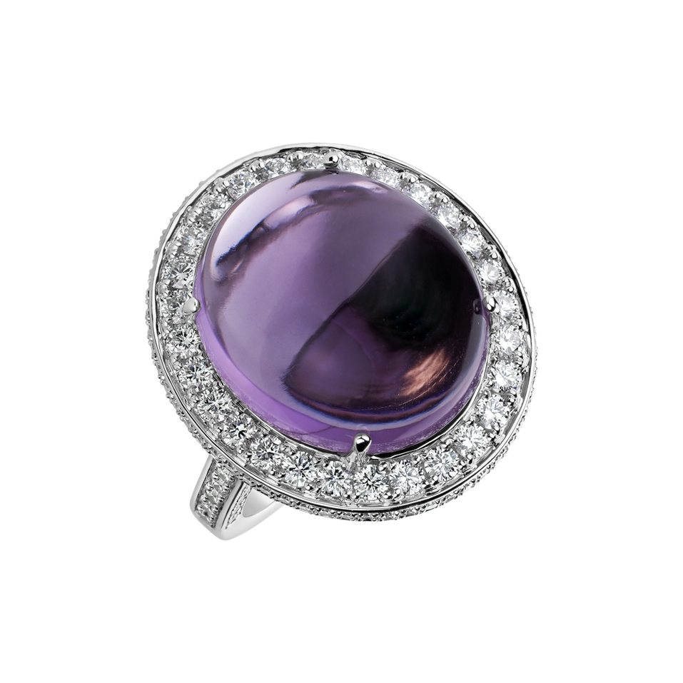 Show the world your life's achievements. This 14ct white gold ring with diamonds and Brazilian amethyst represents perfection in the form of a piece of jewelry that is a strong statement of personal charm and timeless style. The jewelry is part of the Blossoms collection.