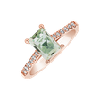 This 14ct rose gold diamond and green amethyst ring is a perfect piece of art. Its design is thoughtful and so extremely elegant. The diamonds and amethyst on this ring create a sparkling play of light that enchants everyone who looks at it. The jewelry is part of the Luxury Classic collection.