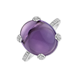Delicacy and elegance combine in this 14ct white gold ring with diamonds and African amethyst. Its subtle design is the perfect accessory for any important occasion, adding flair while emphasizing the wearer's delicate beauty. The jewelry is part of the Blossoms collection.