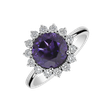 A radiantly beautiful ring in 14ct white gold, complemented by diamonds and African amethyst, is a reference to passionate moments worth remembering. The jewelry is part of the Starlet collection.