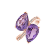 This 18ct rose gold ring with diamonds and Brazilian amethyst is a testimony of deep feelings and a unique style that will never betray you. Its timeless design and luxurious beauty make it not only an elegant piece of jewelry, but also a faithful companion on the journey of your life. The jewelry is part of the Fantasy collection.
