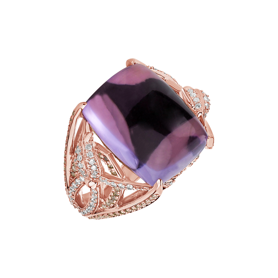 Ring with Amethyst, brown and white diamonds Fascinating Ladyship