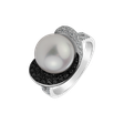 Ring with black and white diamonds and Pearl Cruell Pearl