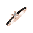 An enchanting ring in 14ct rose and black gold with white and black diamonds exemplifies elegance in its purest form. Its high-quality diamonds create a contrast between black and white, adding a subtle yet distinctive sparkle that radiates confidence and beauty. The jewelry is part of the Luxury Classic collection.