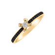 An enchanting ring in 14ct yellow and black gold with white and black diamonds exemplifies elegance in its purest form. Its high-quality diamonds create a contrast between black and white, adding a subtle yet distinctive sparkle that radiates confidence and beauty. The jewelry is part of the Luxury Classic collection.