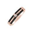 An enchanting ring in 14ct rose and black gold with white and black diamonds exemplifies elegance in its purest form. Its high-quality diamonds create a contrast between black and white, adding a subtle yet distinctive sparkle that radiates confidence and beauty. The jewelry is part of the Luxury Classic collection.