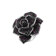 A 14ct white and black gold ring with black diamonds and a ruby is like a sweet song capturing the essence of beauty and harmony. This piece of jewelry is made for moments when you want to shine like never before. The jewelry is part of the Flowers collection.