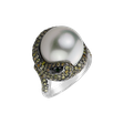 The 18ct white and black gold diamond, sea white pearl, green garnet and brown diamond ring boasting perfection and carefully selected stones is a symbolic seal of eternal elegance. The jewelry is part of the Ocean & River collection.
