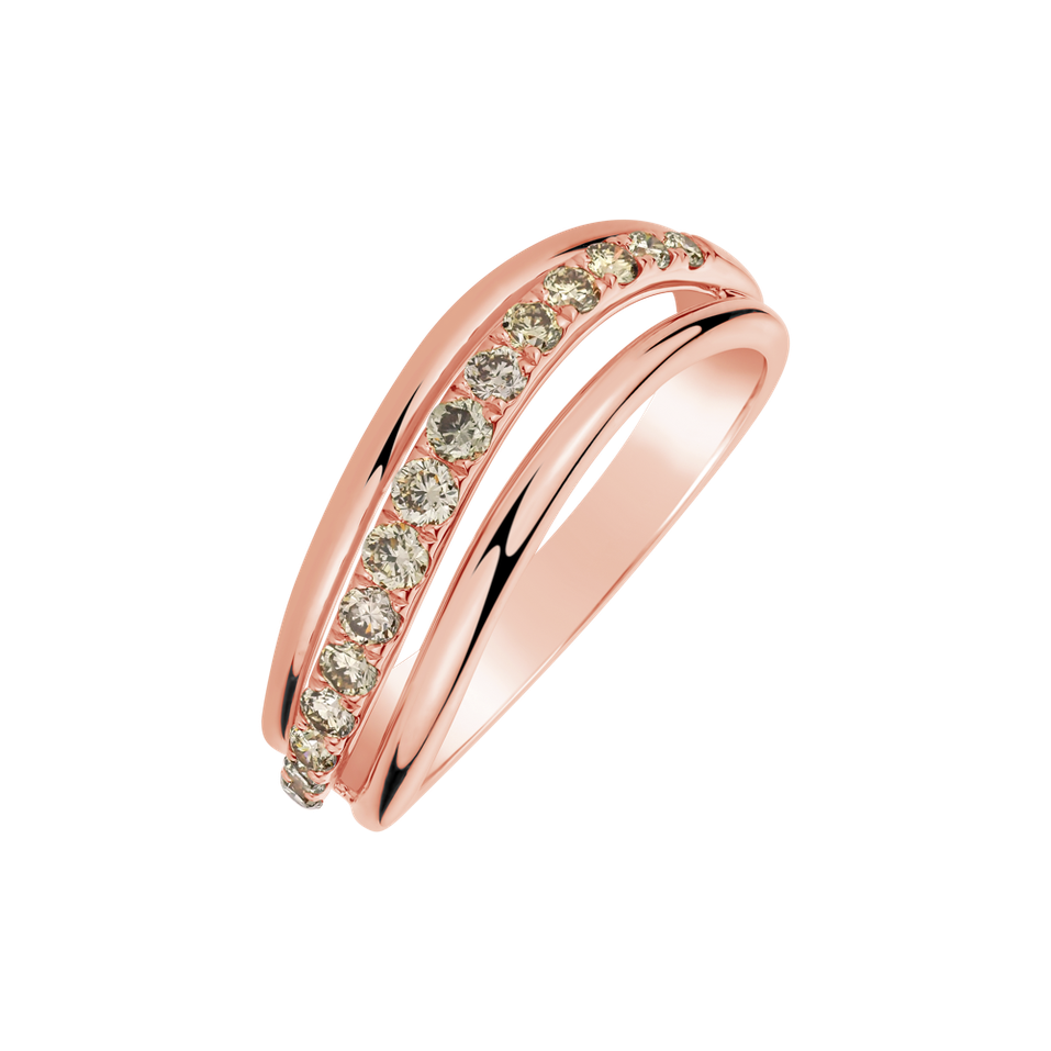 Give elegance and sophistication with this 14ct pink ring with brown diamonds. Each diamond is carefully set to create the effect of a beautiful dance of light, making this ring an ideal choice for a woman with exceptional taste. The jewelry is part of the Essential collection.